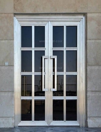 طراحی دو لنگه علاوه بر زیبایی ظاهری، فضای بازشو را بسیار وسیعتر میکند و امکان عبور راحت افراد و وسایل را فراهم میسازد. سطح براق و یکپارچه استیل به لابی جلوهای لوکس و تمیز میدهد و امکان سفارشیسازی در ابعاد، طرح، رنگ استیل، نوع شیشه و دستگیره نیز وجود دارد.